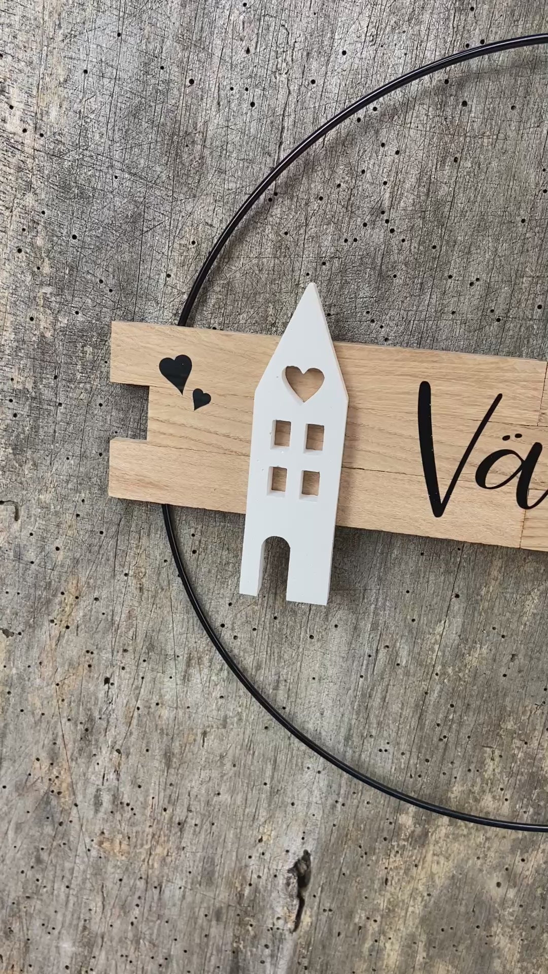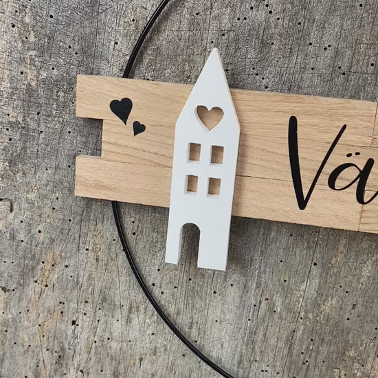 30 cm großer Türkranz Välkomna Schweden Willkommen Haus Metallring Geschenk Hauseinweihung Freundin Türschild Holzschild Eingang