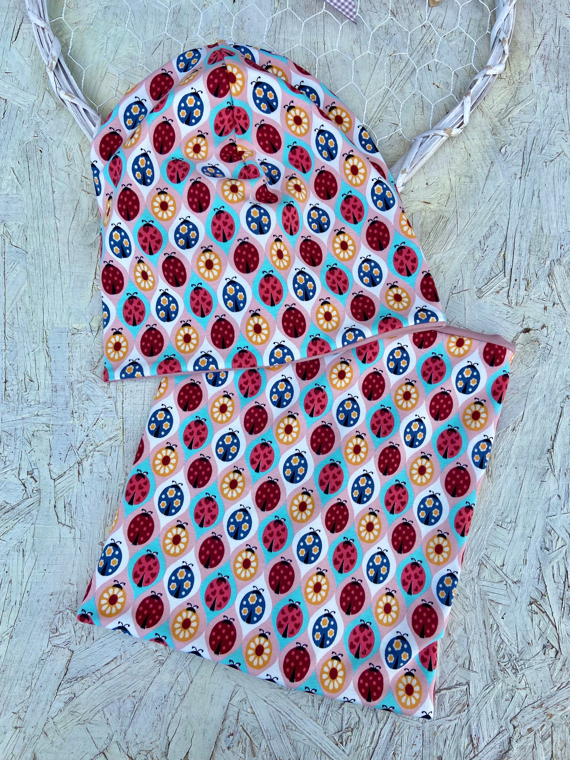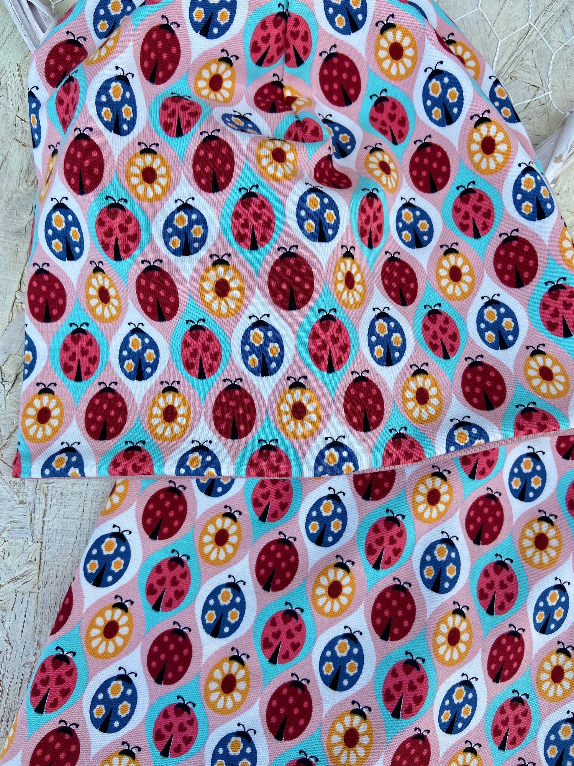 Mit viel Herz und Freude wird dieses kleine Beanie Set aus weichem hochwertigem Jersey mit Käferchen Motiv angefertigt...