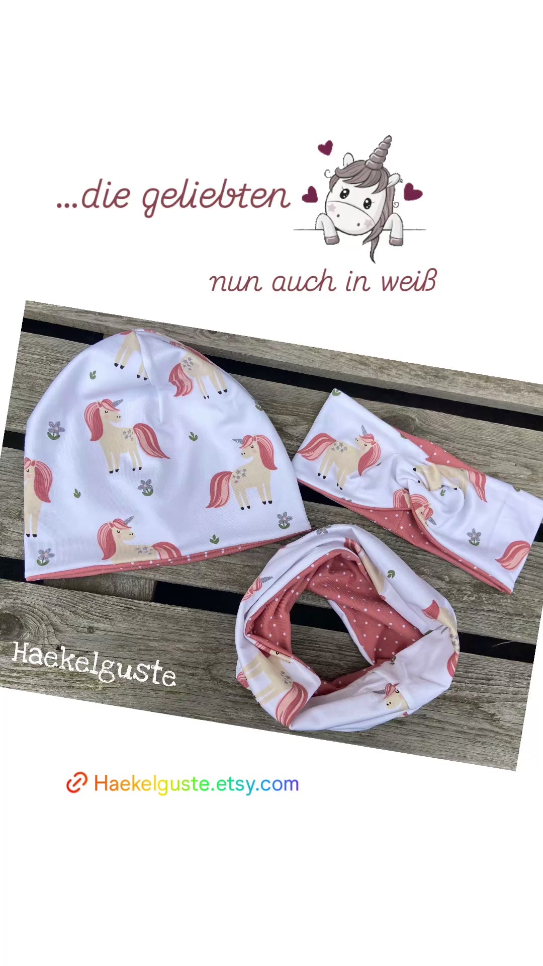 Mit viel Herz und Freude werden diese kleinen Mützen , Loop´s und Stirnbänder aus weichem hochwertigem Jersey mit Einhorn Motiv in gewünschter Größe angefertigt.