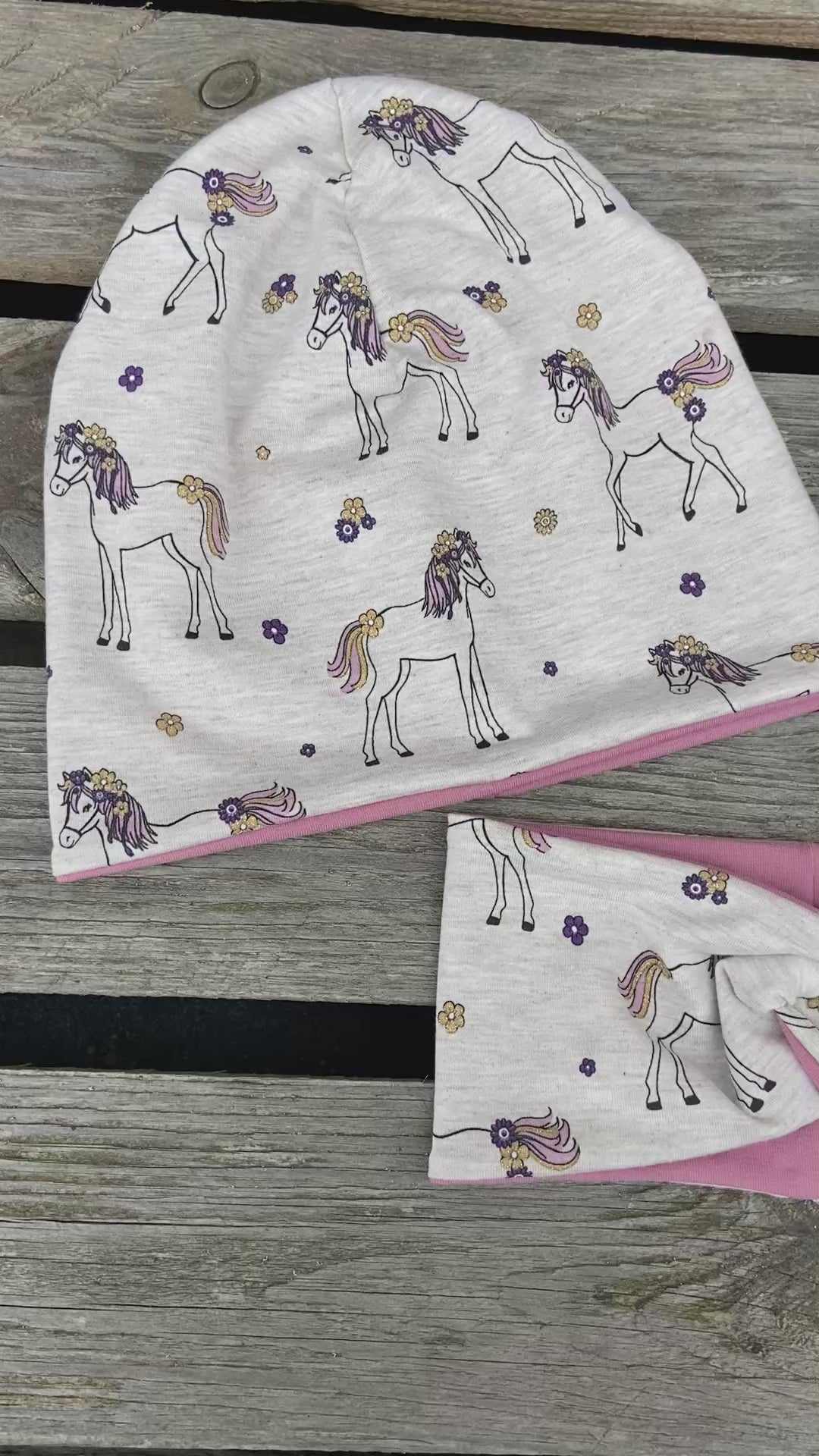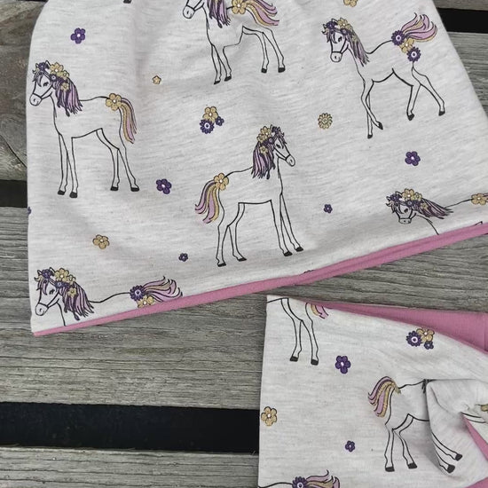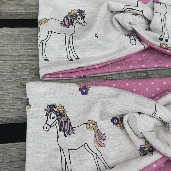 Pferd Beanie + Loop , Stirnband, Mädchen Mütze, Übergang gefüttert Knotenstirnband , Glitzer