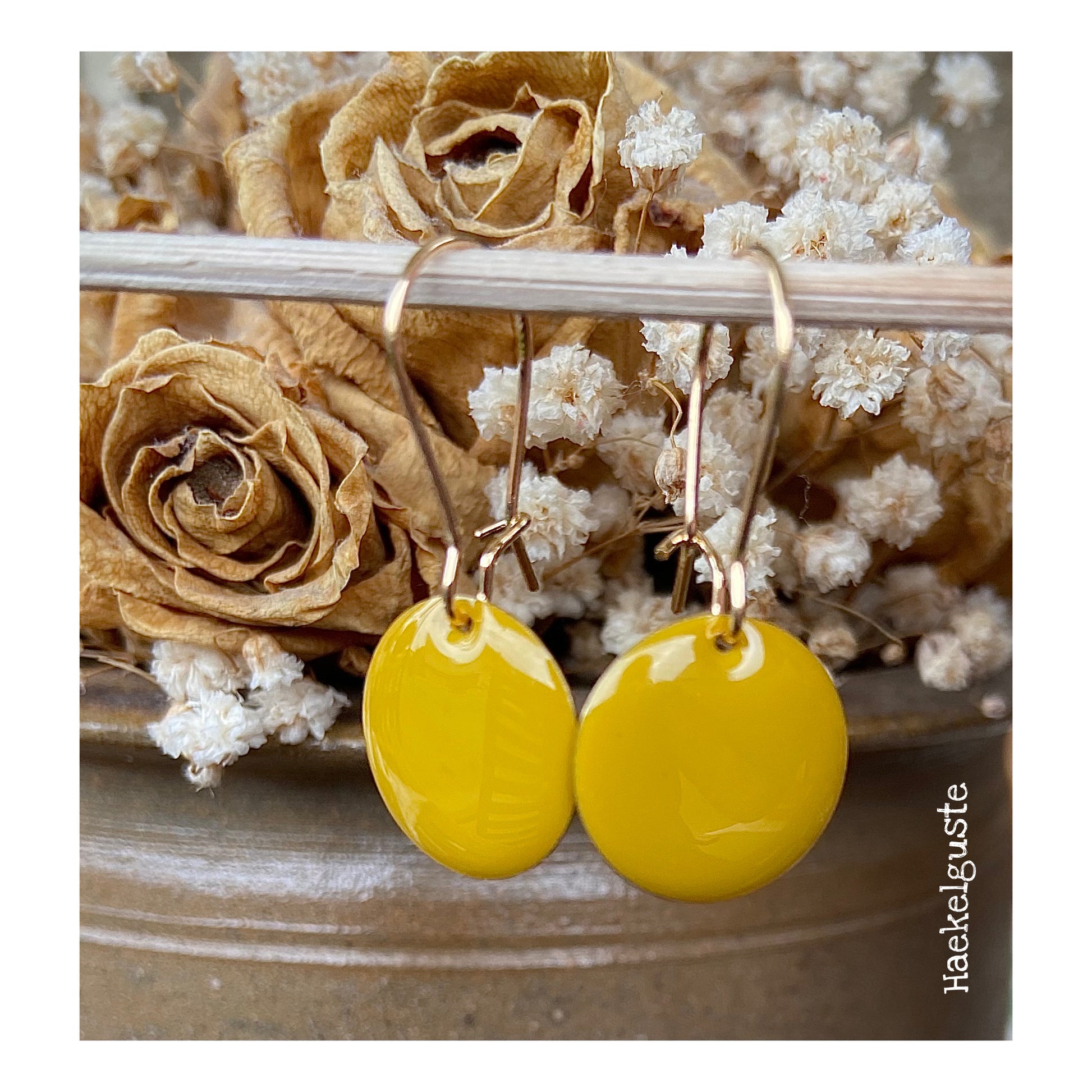 Emaille Ohrhänger Plättchen gelb Senfgelb 16 mm Ohrringe