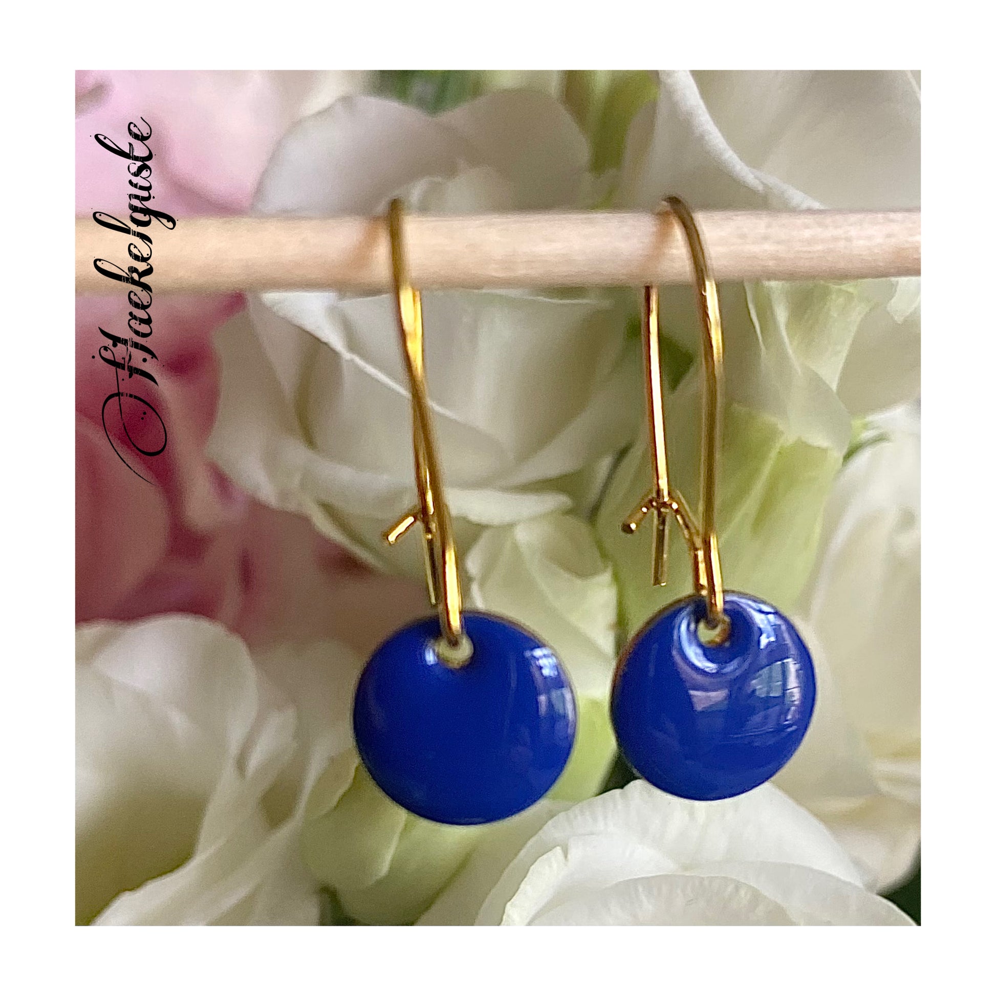 Wunderschöne Ohrhänger aus Emaille Plättchen mit 10 mm Durchmesser.