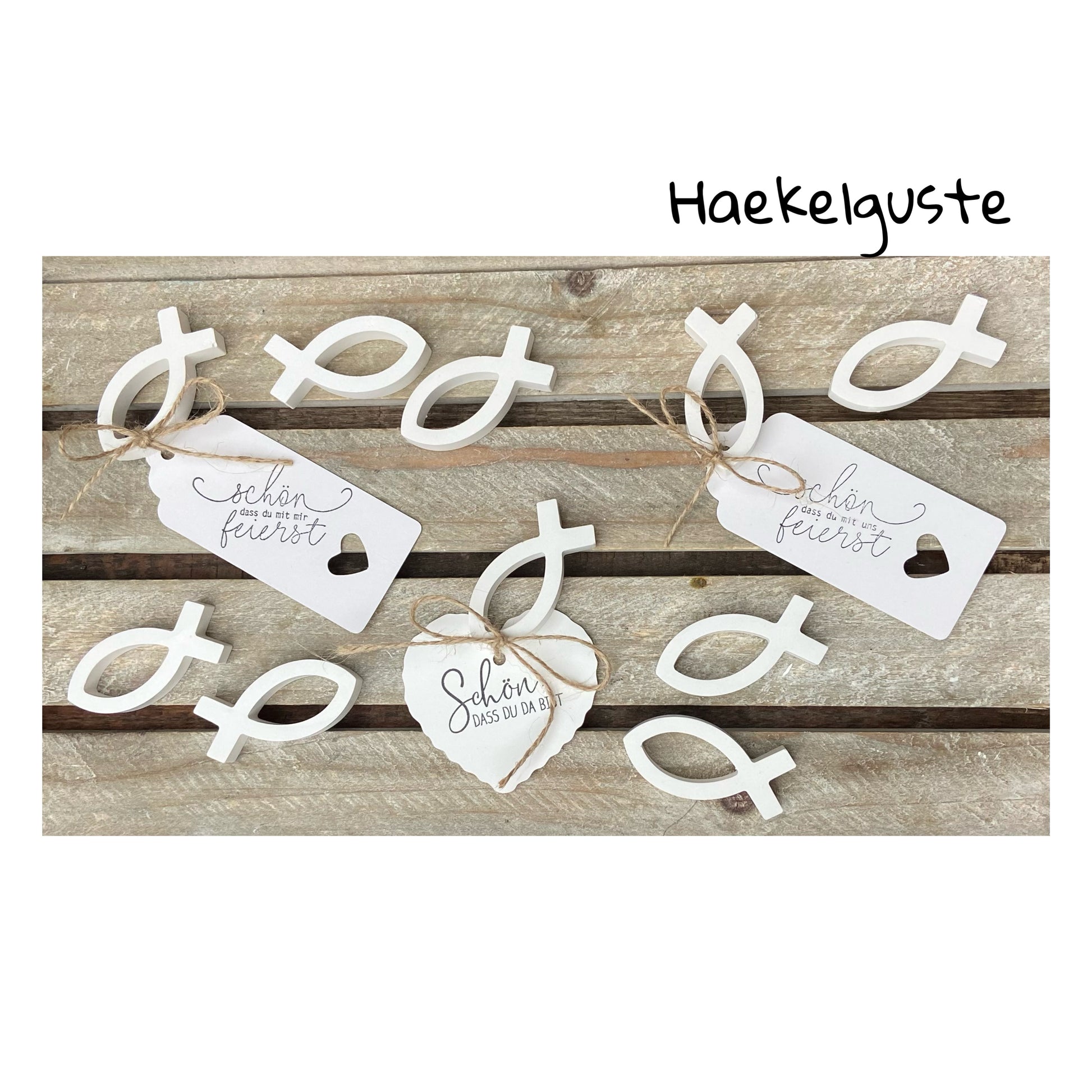 - Lieferumfang - Fisch + Kärtchen + Juteband Schriftzug auf den Kärtchen ( Form der Kärtchen wie abgebildet )