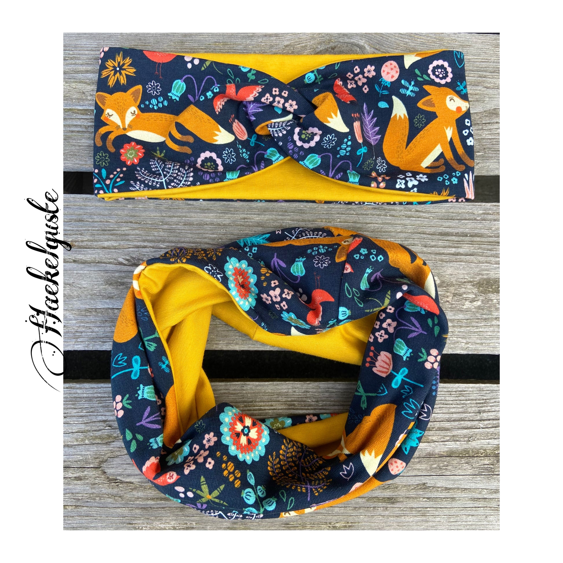 Mit viel Herz und Freude werden diese kleinen Mützen , Loop´s und Stirnbänder aus weichem hochwertigem Jersey mit Fuchs Motiv in gewünschter Größe angefertigt.