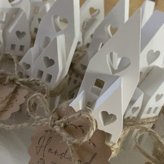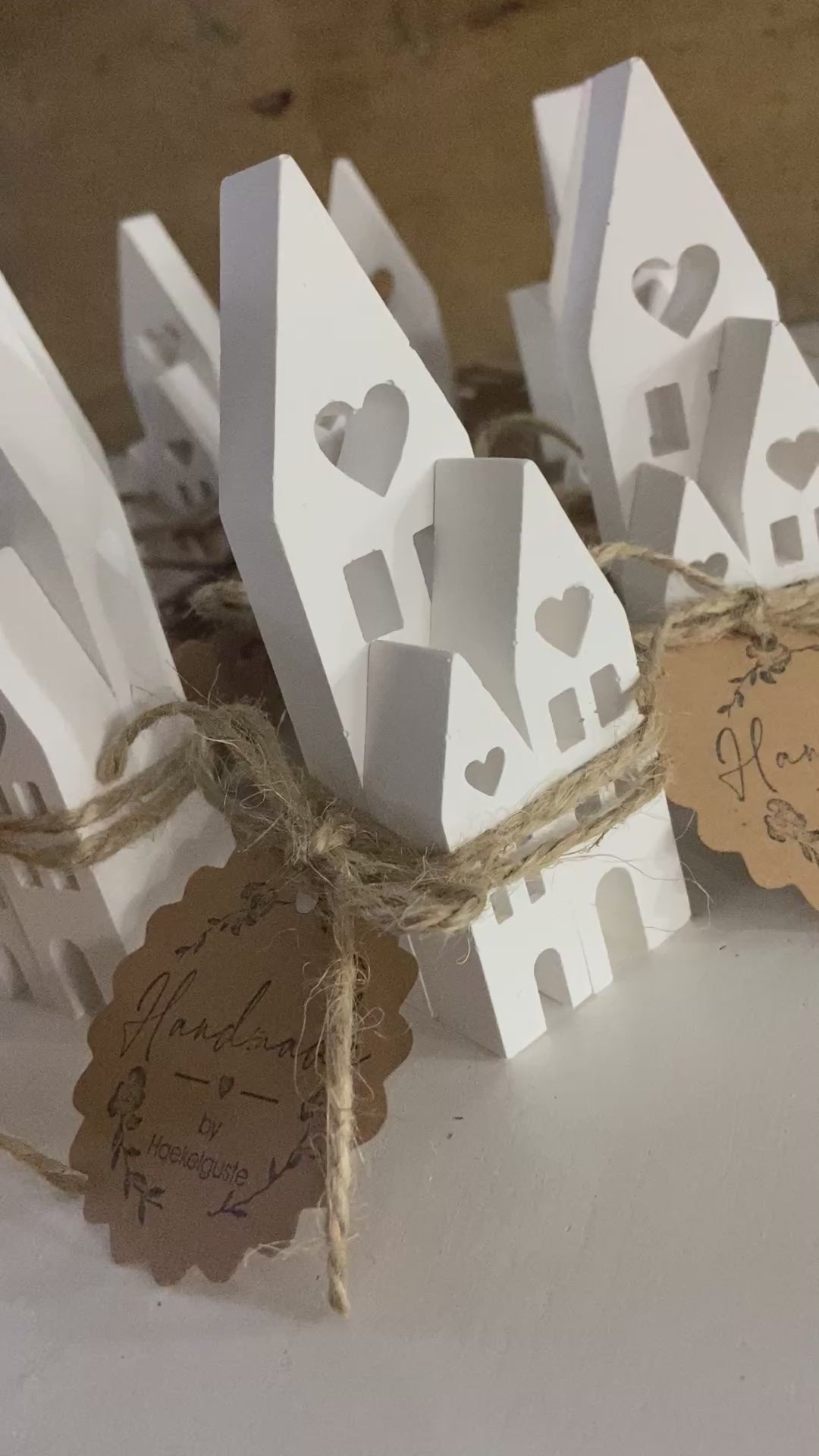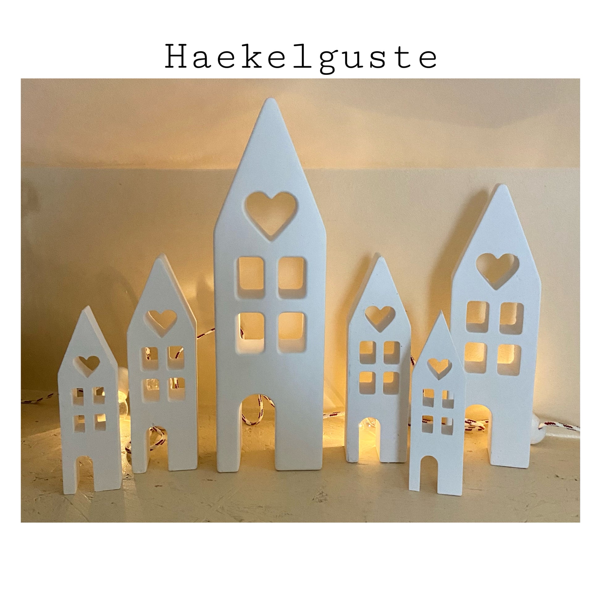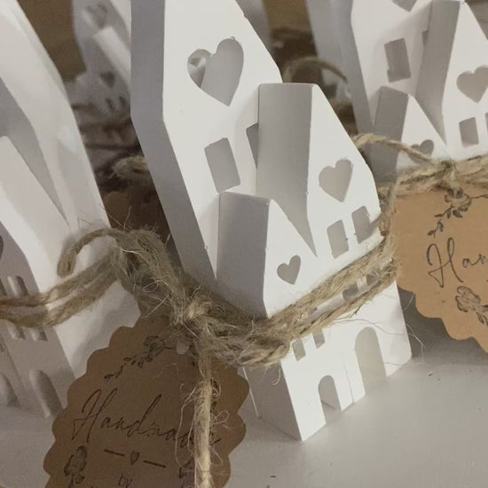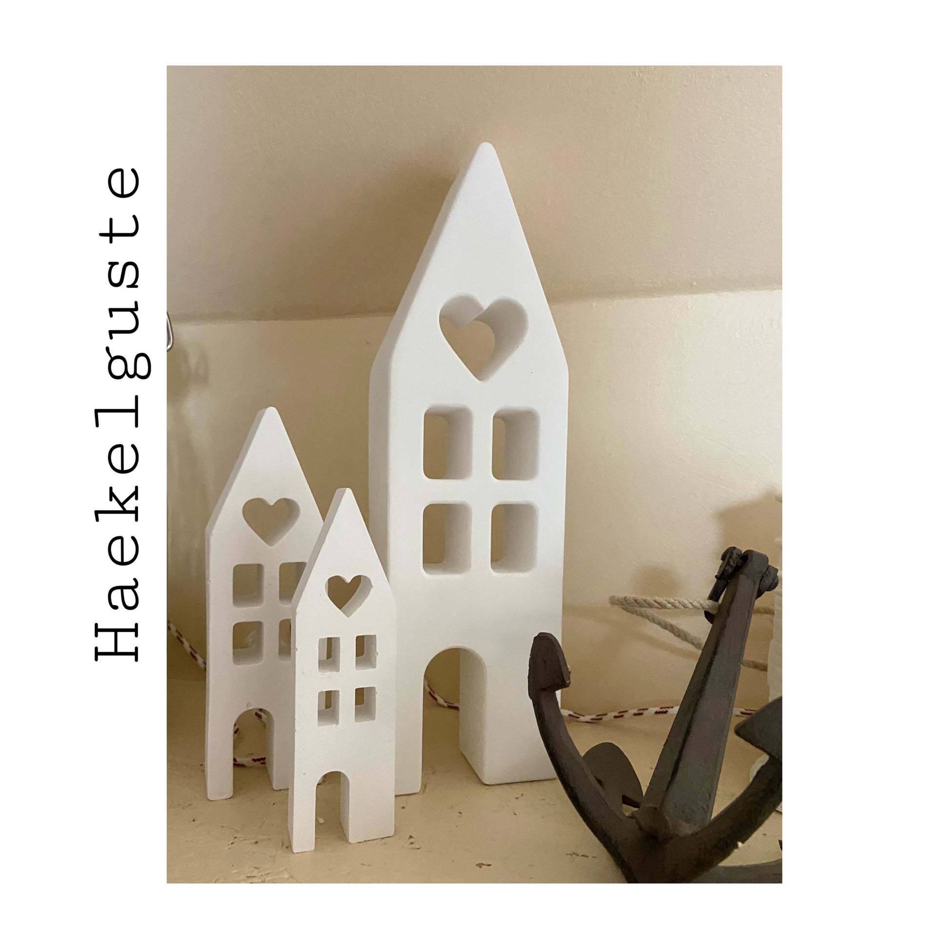 große Häuser weiß Deko Landhaus Hochzeit Tischdeko Geburtstag Geschenk Set 6 Größen Häuser Lichterhäuser Hygge Scandi Haus Kerzenteller