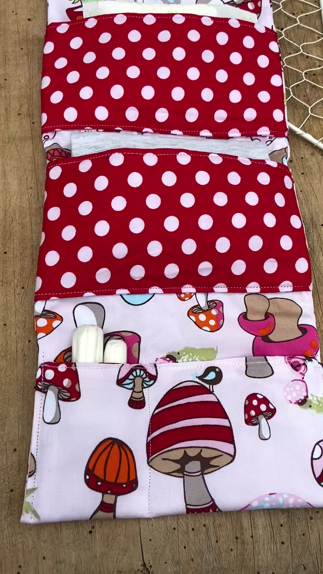 Passt in jeden Schulrucksack , Sporttasche , Handtasche e.t.c. und kann an dem kleinen Gummiband gut an einem Handtuchhaken oder der Türklinke angehangen werden ... so sind die Hände frei und man muss das Täschchen nicht irgendwo unhygienisch ablegen