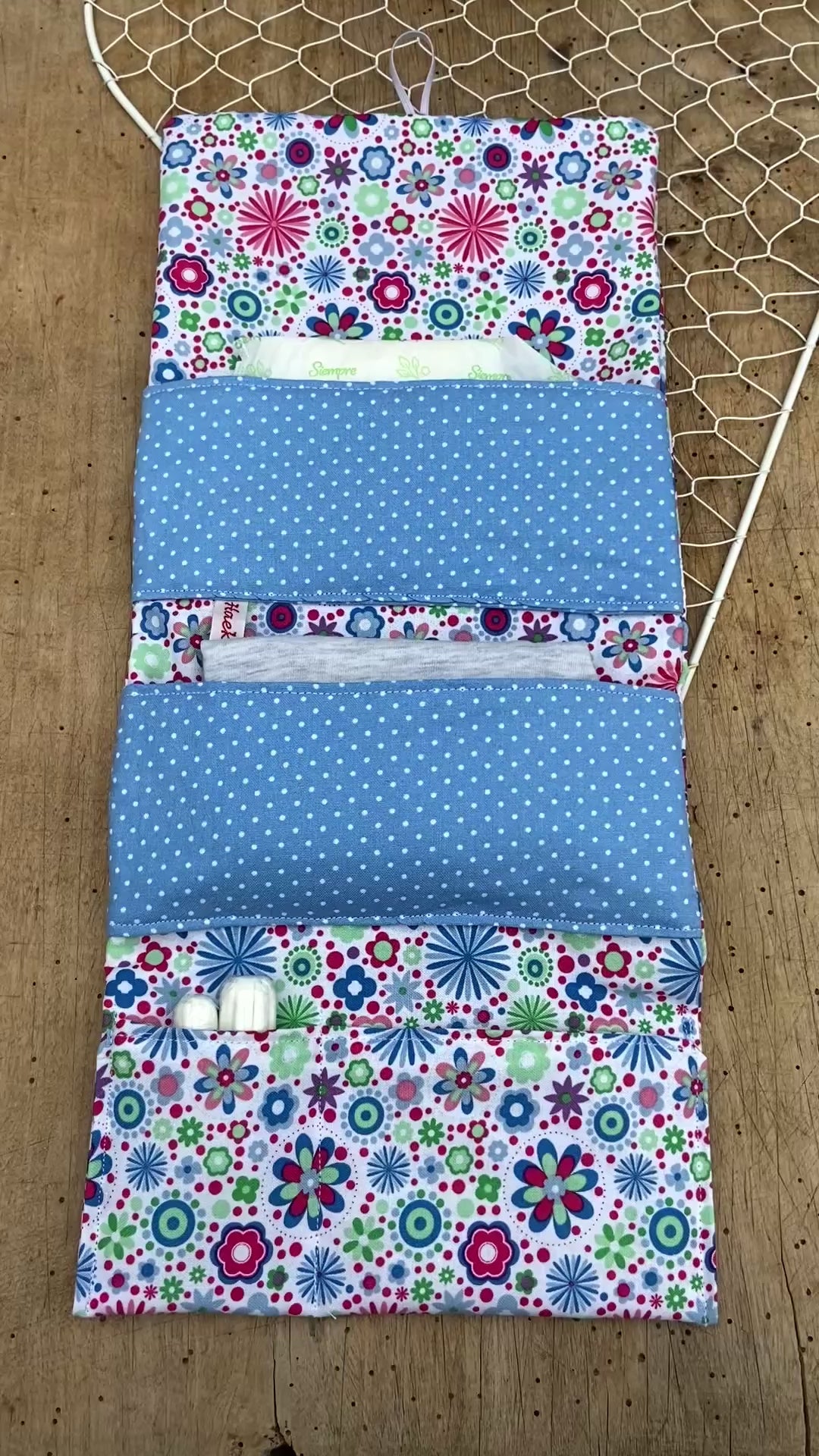 Passt in jeden Schulrucksack , Sporttasche , Handtasche e.t.c. und kann an dem kleinen Gummiband gut an einem Handtuchhaken oder der Türklinke angehangen werden ... so sind die Hände frei und man muss das Täschchen nicht irgendwo unhygienisch ablegen