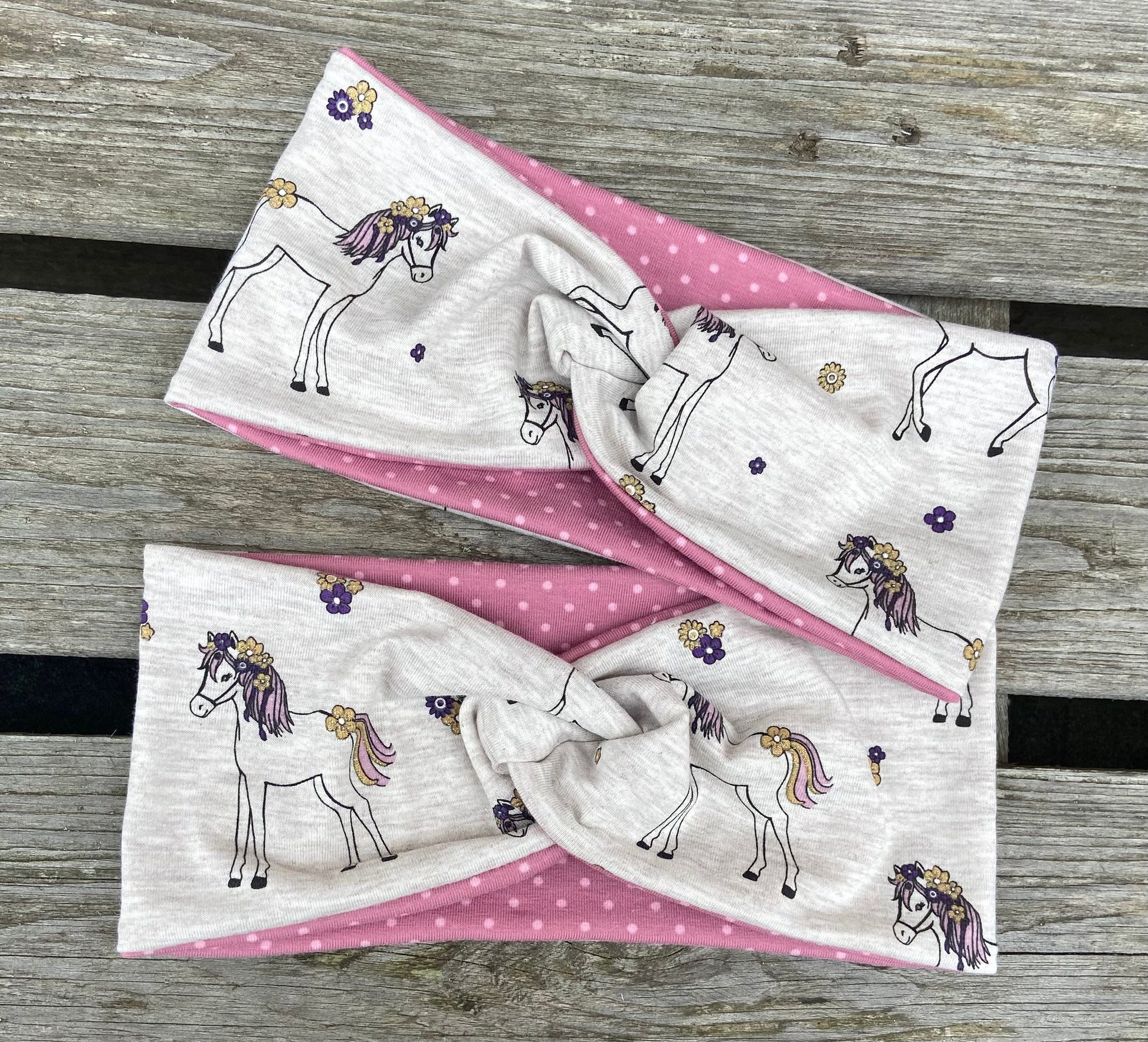 Mädchen KnotenStirnband Haarband haedband Pferd Einhorn beige sand