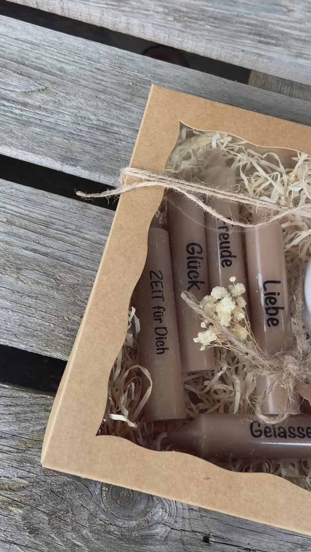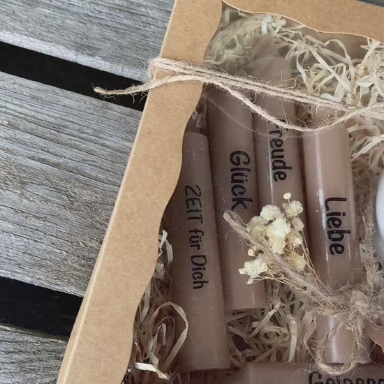 Kästchen Nimm dir was du brauchst Geschenkset Kerzen beste Freundin Frau Geburtstag Kerzenständer Stabkerzen Herzensmensch Valentinstag