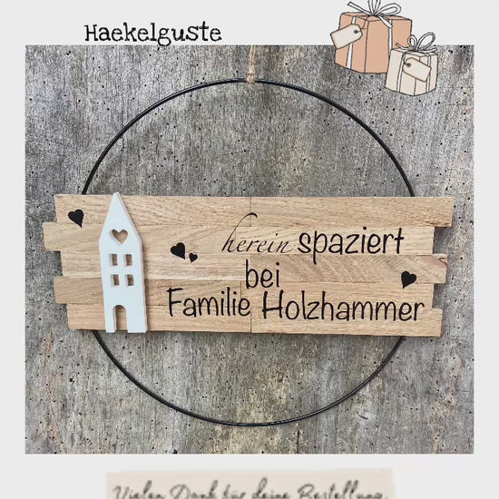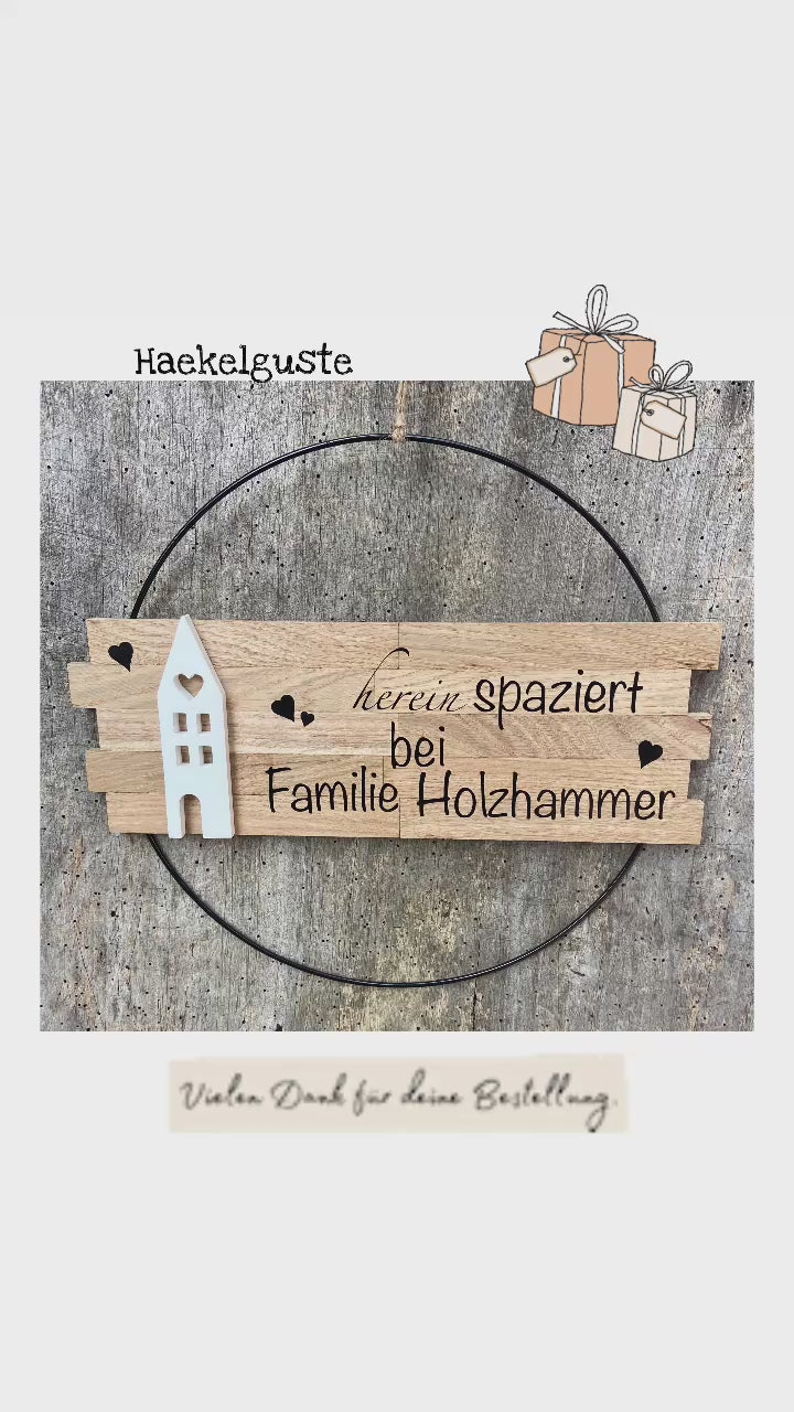 Personalisiert 30 cm großer Türkranz herein Spaziert Haus Metallring Geschenk Hauseinweihung Türschild Holzschild Eingang neues Heim Zuhause