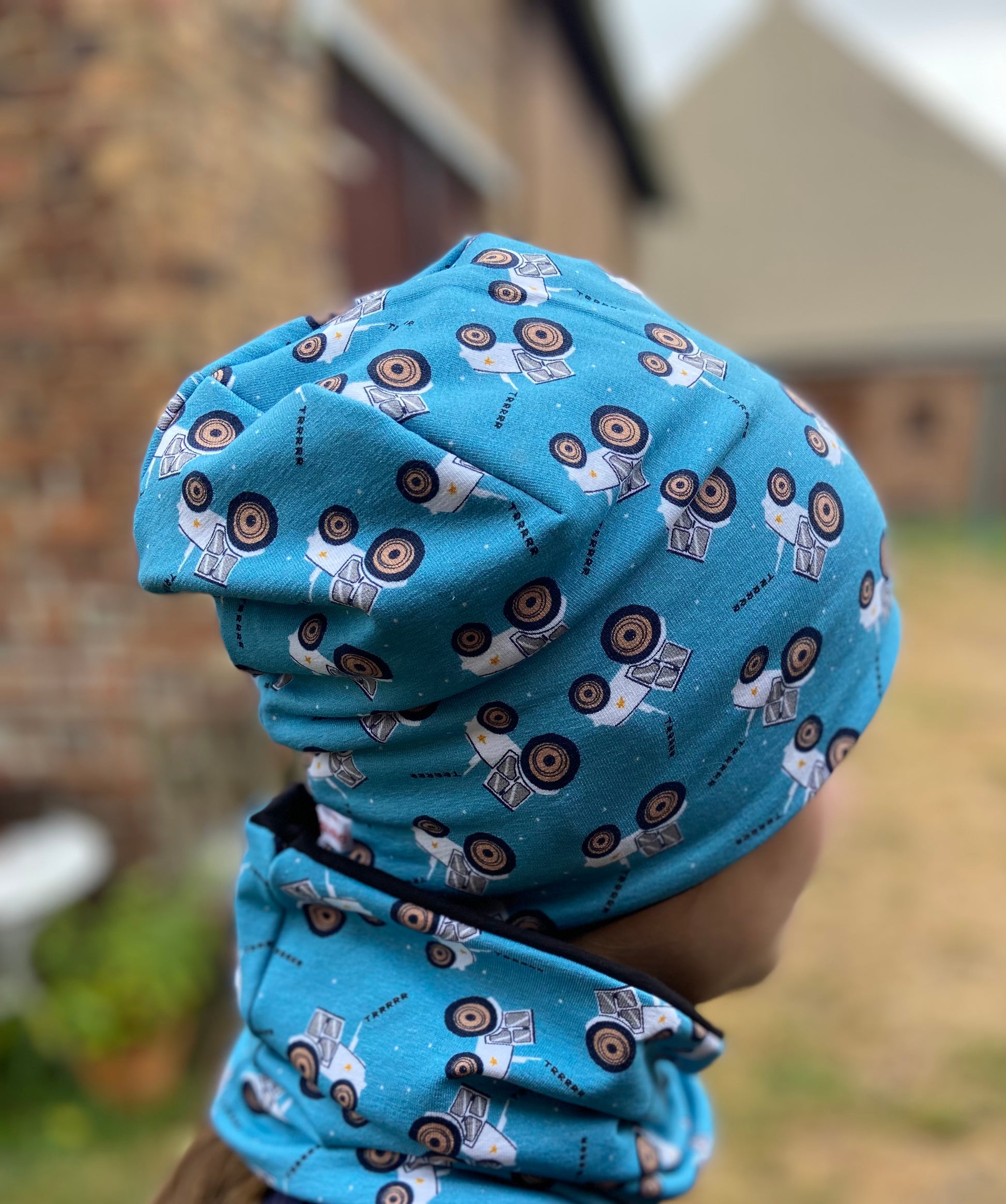 Set Mütze, Traktor Beanie, Loop Jersey o. Fleece blau rot Kinder Übergang Herbst Mütze 2 lagig