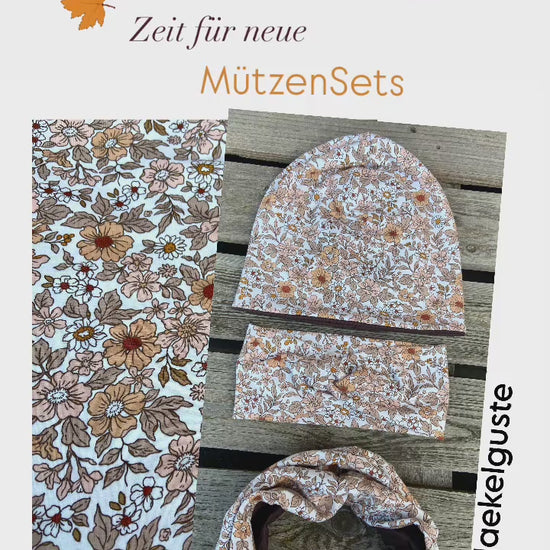 Mit viel Herz und Freude wird dieses Stirnband , Mütze und Loop aus weichem hochwertigem Jersey mit Streublümchen Motiv in gewünschter Größe angefertigt.
